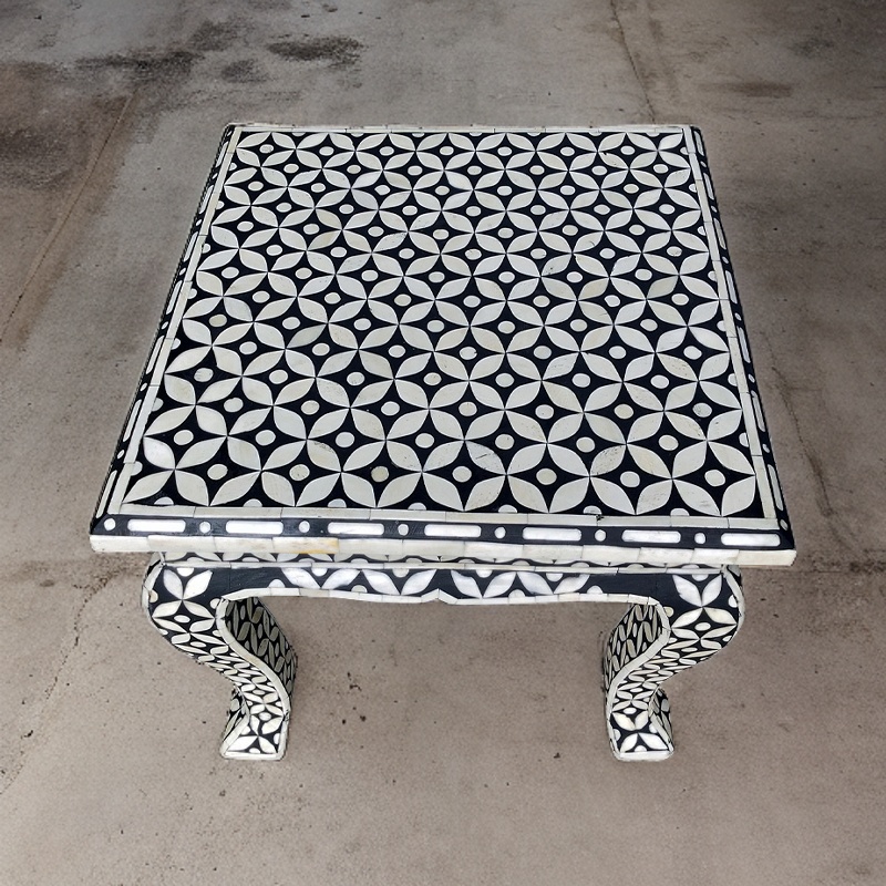 Q: Can I customize the pattern and size of the table? A: Yes, we offer customization options for the Bone Inlay Geometrical Side Table. You can choose the pattern and size that best suits your personal style and