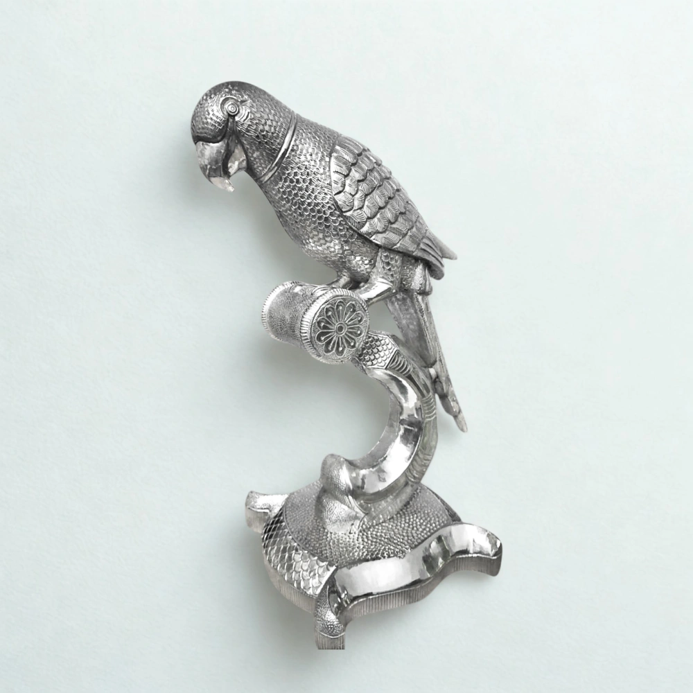 Beyond its visual charm, the parrot in Indian tradition is associated with spiritual communication, vibrant energy, and devotion. Placing this silver parrot in your home brings in these qualities while also serving as a conversation starter due to its fine artistry and historical value.