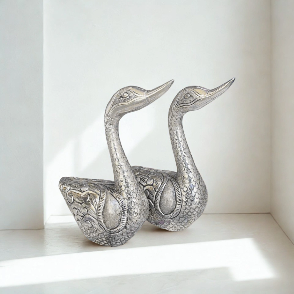 To ensure durability and maintain its silver brilliance, each piece undergoes a protective lacquering process. This final layer guards against tarnishing, dust, and humidity, ensuring the hans retain their divine shine for years to come. Despite their ornamental grace, these swans remain practical in terms of upkeep—requiring only light dusting and gentle care.