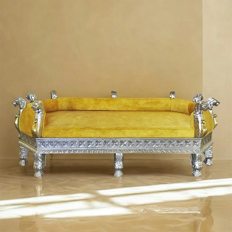 Some clients prefer a matte silver finish for a vintage look, while others choose a high-shine polish that stands out in modern interiors. The carving depth, pattern intricacy, and cushion additions are also tailored upon request. Additionally, you may pair this lounger with complementary side tables, mirrors, or accent pieces to build a cohesive royal interior theme.