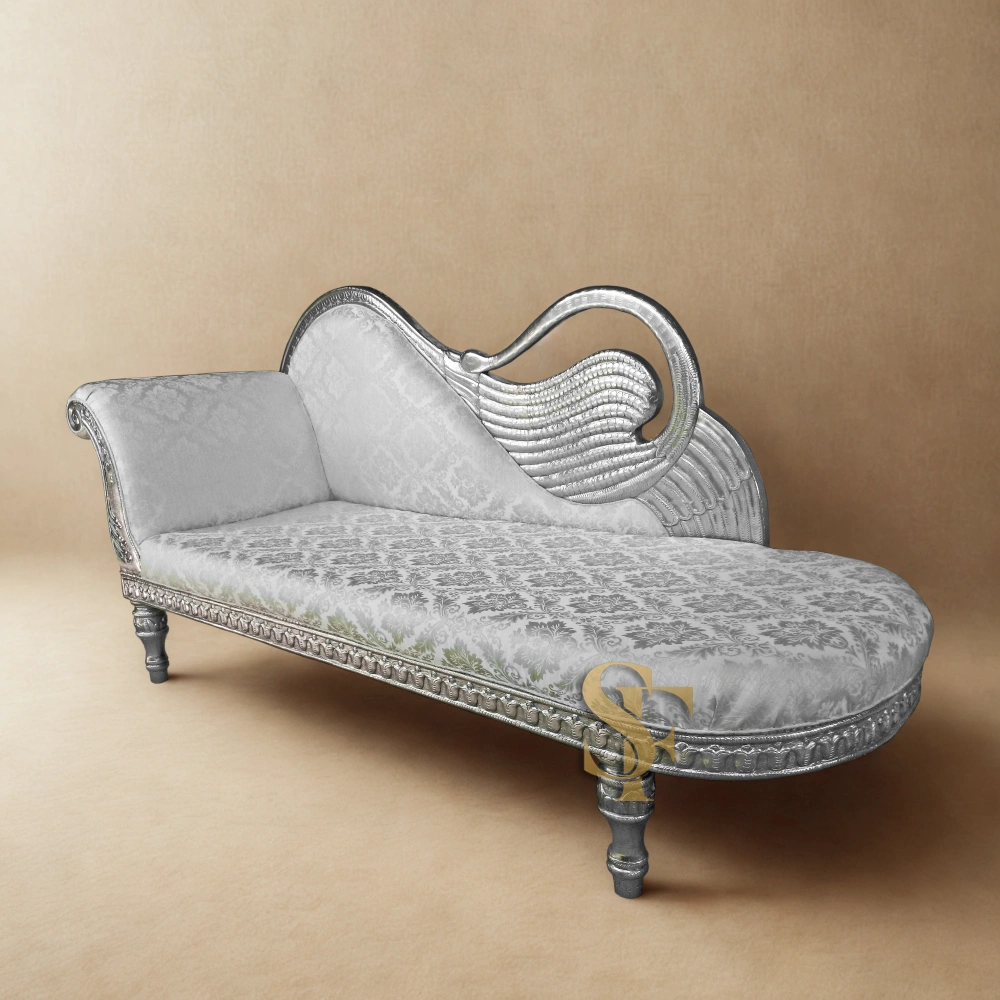 Placed in a living room, private lounge, or luxury suite, the Silver Peacock Chaise effortlessly becomes the center of attention. It speaks to a sense of occasion and tradition, elevating the space with its presence.
