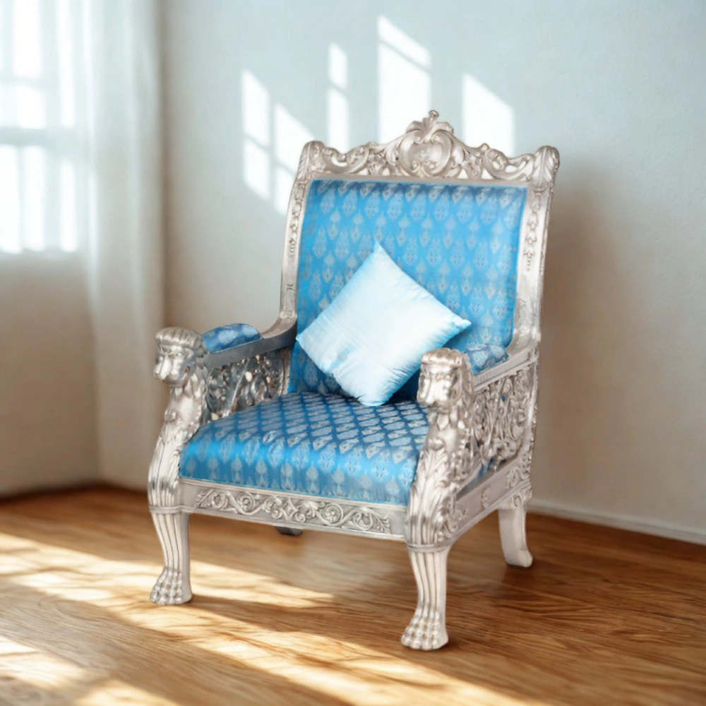 In conclusion, the Silver Throne Chair is not just a seat — it is a symbol of taste, tradition, and artistry. With extensive customization options, you can make it truly your own. From size and carvings to upholstery and cladding material, every detail can be designed to match your unique style.