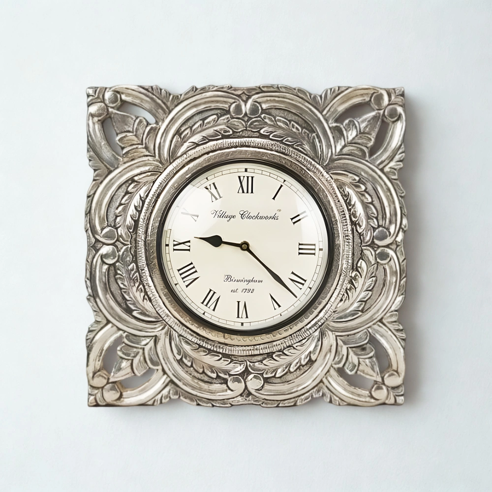 Additionally, the silver surface undergoes careful buffing to achieve a smooth and polished finish that reflects light beautifully. To protect this radiant shine, we apply a high-quality lacquer coating. This layer guards the silver from tarnishing and reduces the need for frequent maintenance. Consequently, your clock stays looking brilliant with minimal effort over time.